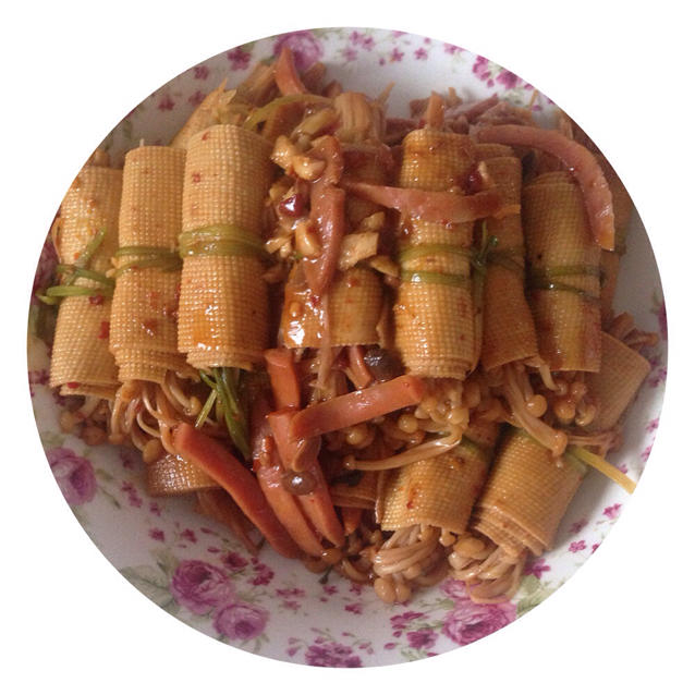 简化版麻辣红油金针菇卷