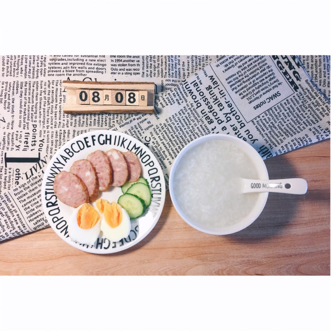 8.8☀️早餐:白粥+鸡蛋🥚+哈尔滨红肠+黄瓜🥒