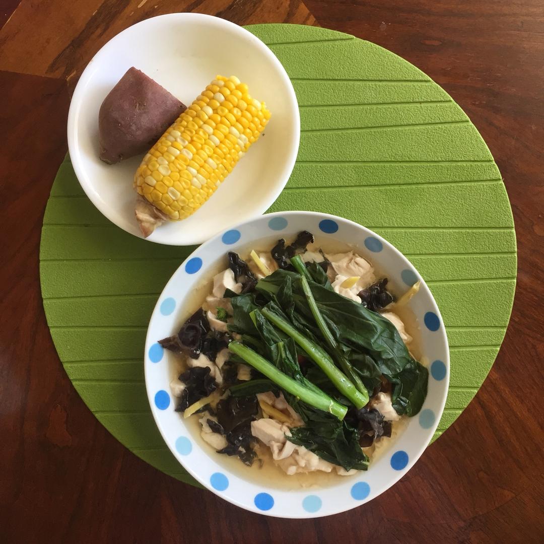 蒸玉米/甜薯/蒸木耳雞胸/油菜