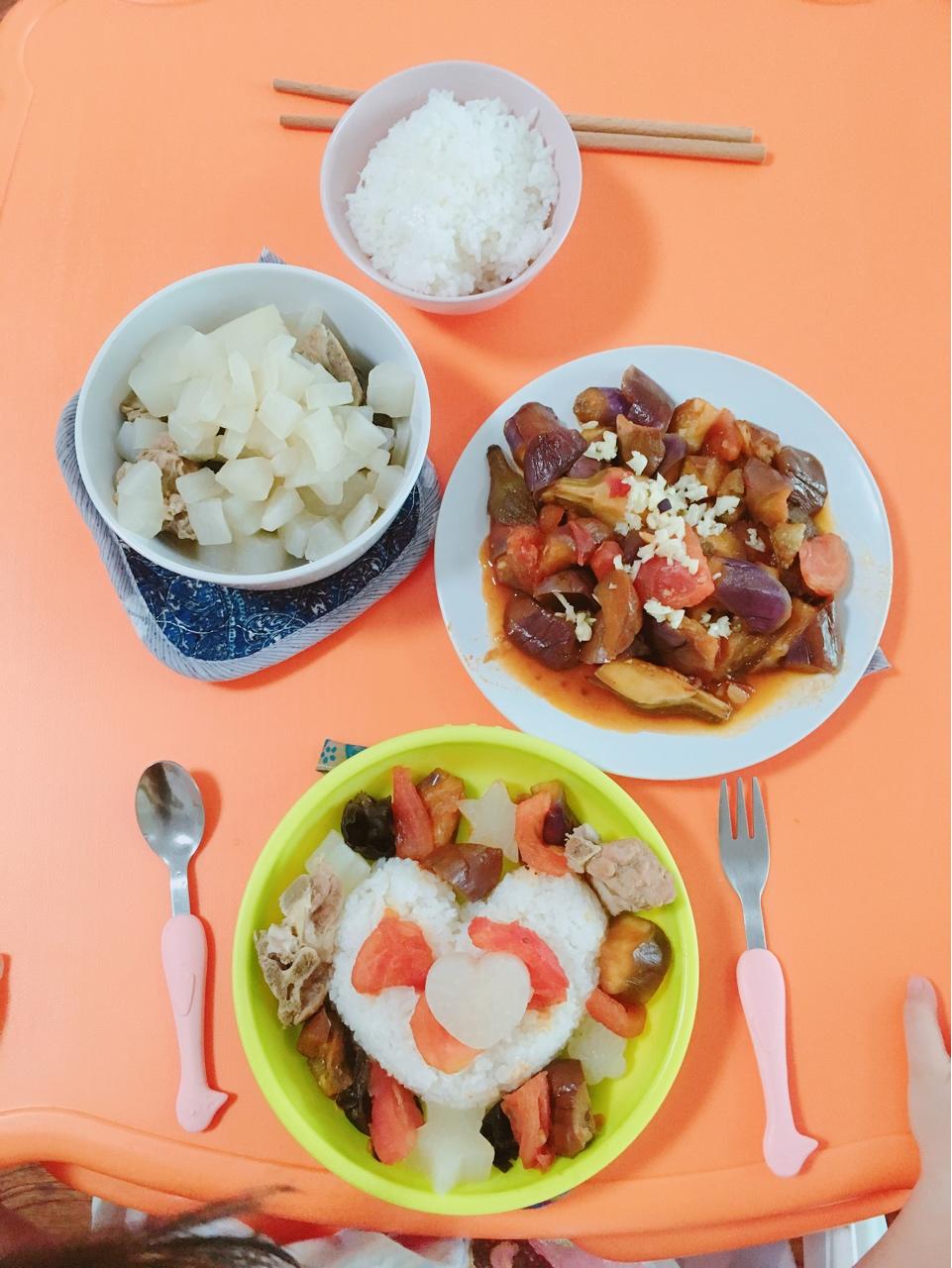 majyo 做过 晚餐•2017年9月1日 今天有点早╮( ̄▽ ̄"")╭萝卜~“埋”排骨+番茄炒茄子(−_−;)对于茄子…想做漂亮真的好难…又不想油炸… #晚餐•2017年9月1日##怪兽的怪兽的# 2017-09-01
