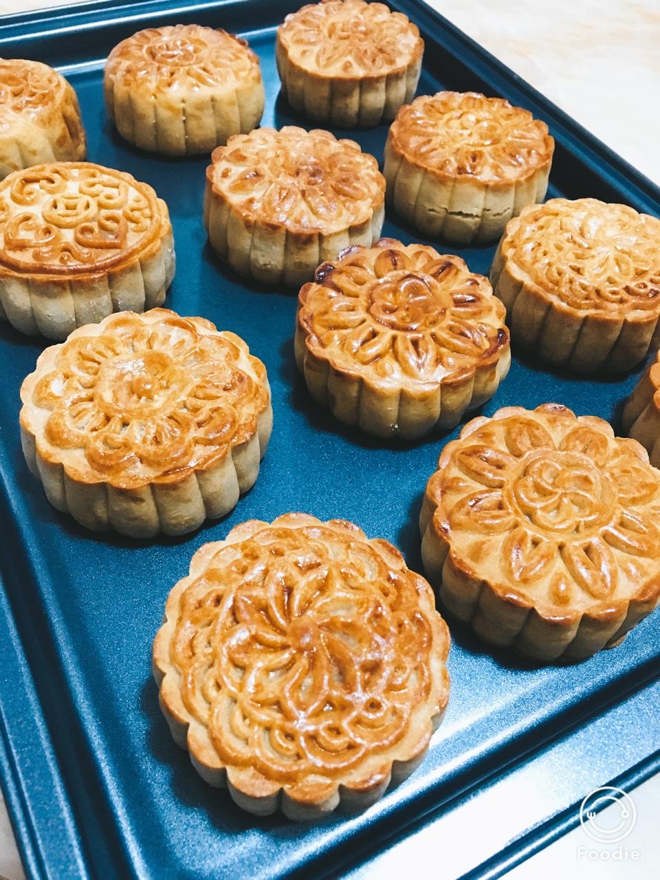 中秋的莲蓉蛋黄月饼圆又圆,就像月儿一样圆😘