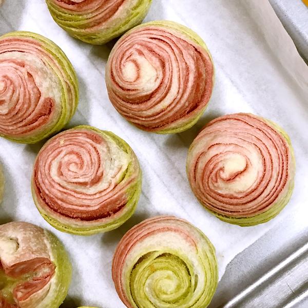油酥只做了抹茶和红曲的,没有紫薯粉。