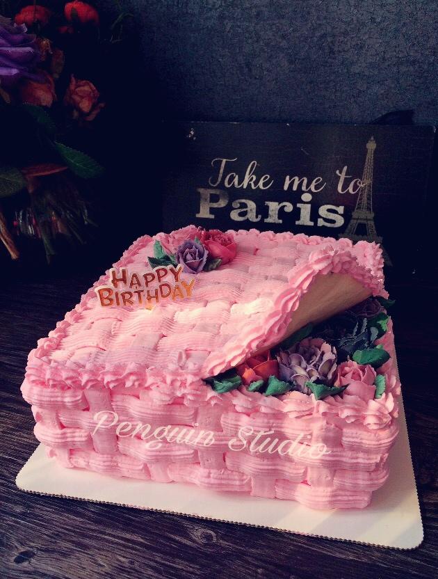 粉色花盒蛋糕