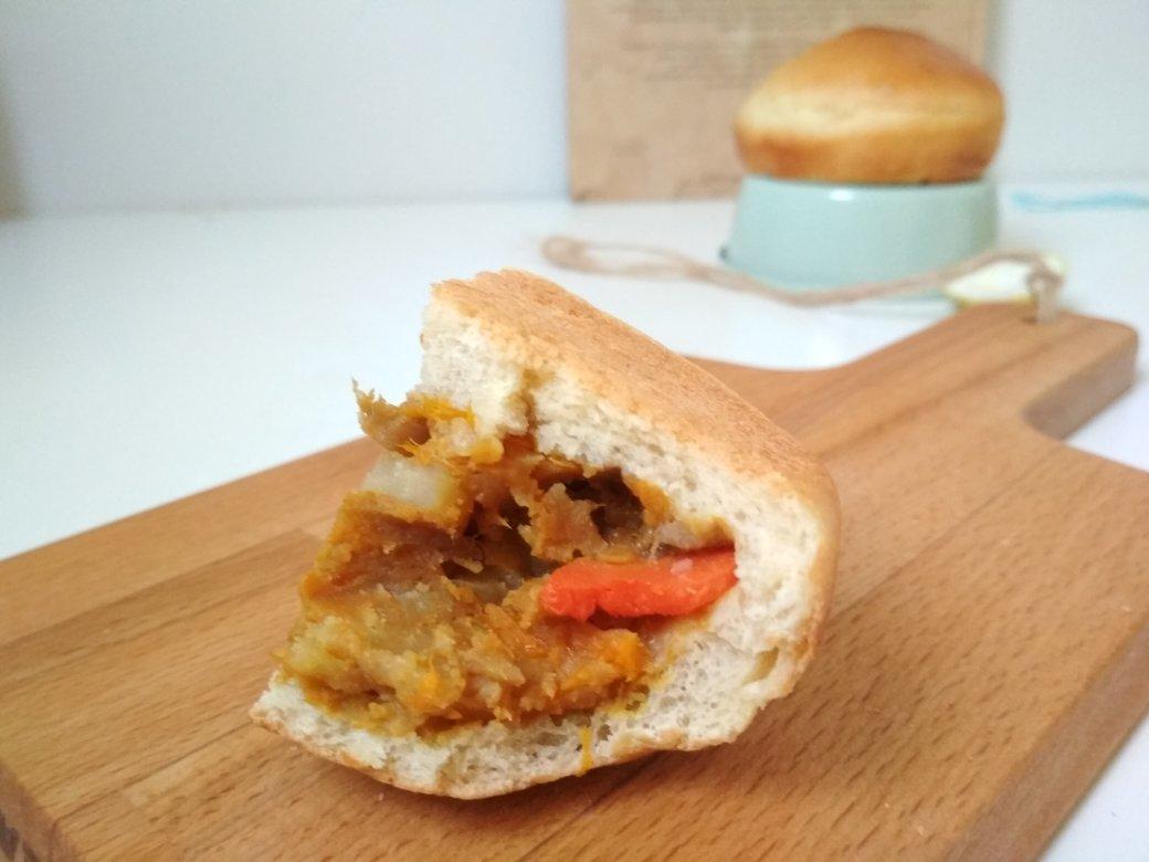 茶貘 做过 2017年12月24日 #晚餐•2017年12月24日##面包剧场#倒过来看像个笑口呢,自己做的咖喱馅料,加的全是自己喜欢吃的,南瓜,胡萝卜,土豆,洋葱~下次想加苹果和番茄。 2017-12-24