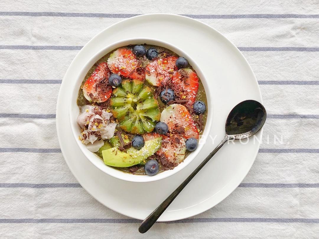 长腿欧尼Ronin 做过 长腿欧尼的低脂早餐 本来应该是可可粉的颜色的加了一把菠菜颜色就有点迷幻了哈哈哈今天是略带点咸口的因为我撒了一大把营养酵母进去这次买的蓝莓挺好吃的草莓很贵而且不甜怀念我大上海的草莓超级便宜超级好吃 #早餐•2017年12月30日##低脂饮食# 2017-12-30