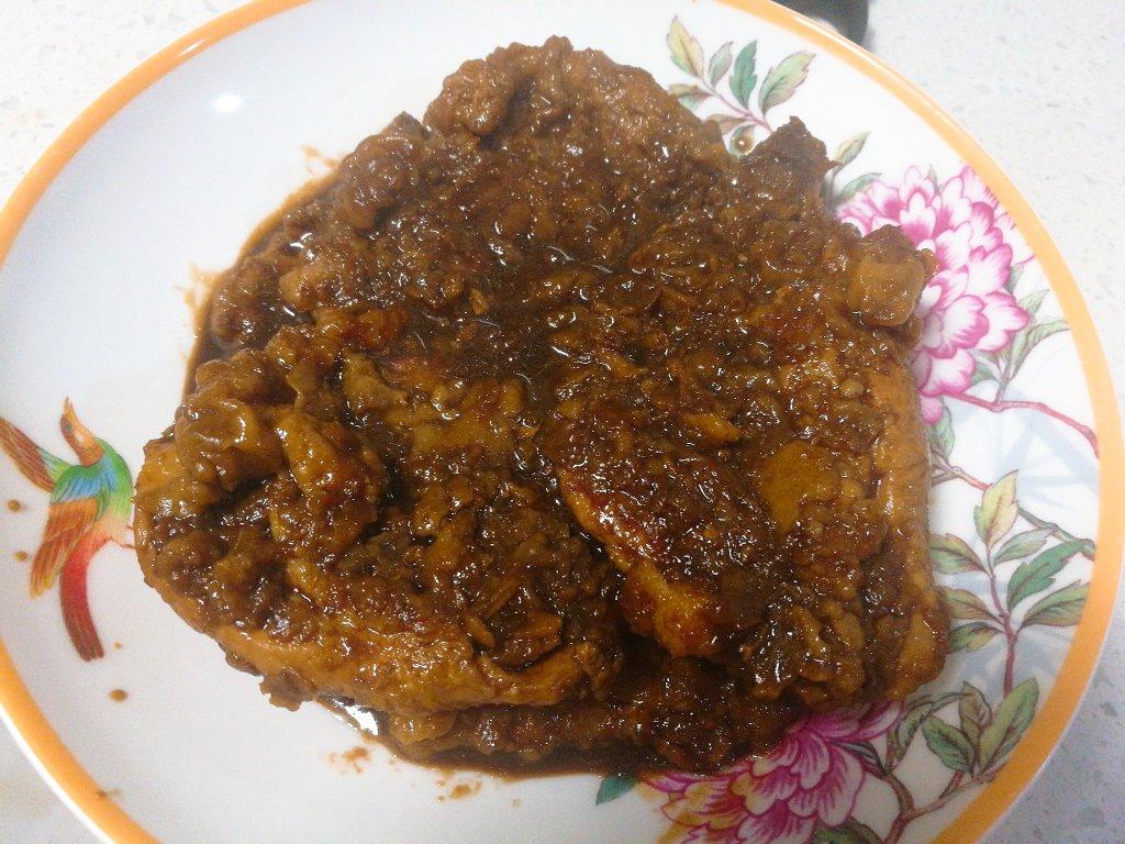 上浆上的差了点,色面一般。用的是梅花大排,非常软嫰。红烧大排,吃的就是那个浓郁的味儿~