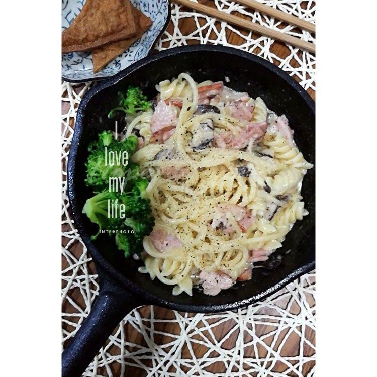 白蘑菇奶油培根意面