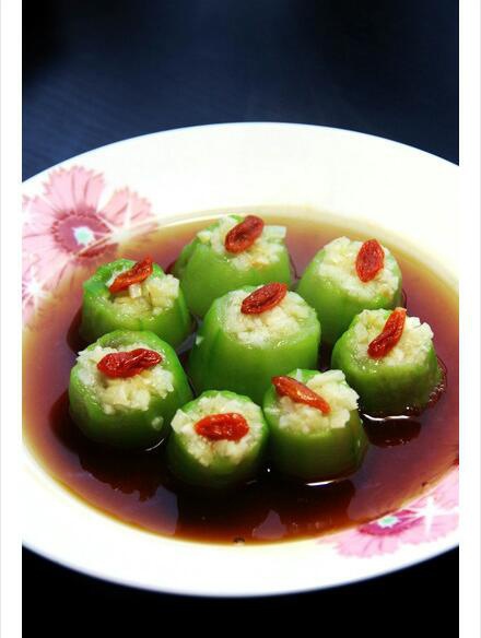 没有红辣椒,放了枸杞子,更加有营养。丝瓜蒸后好水嫩,口感很特别。