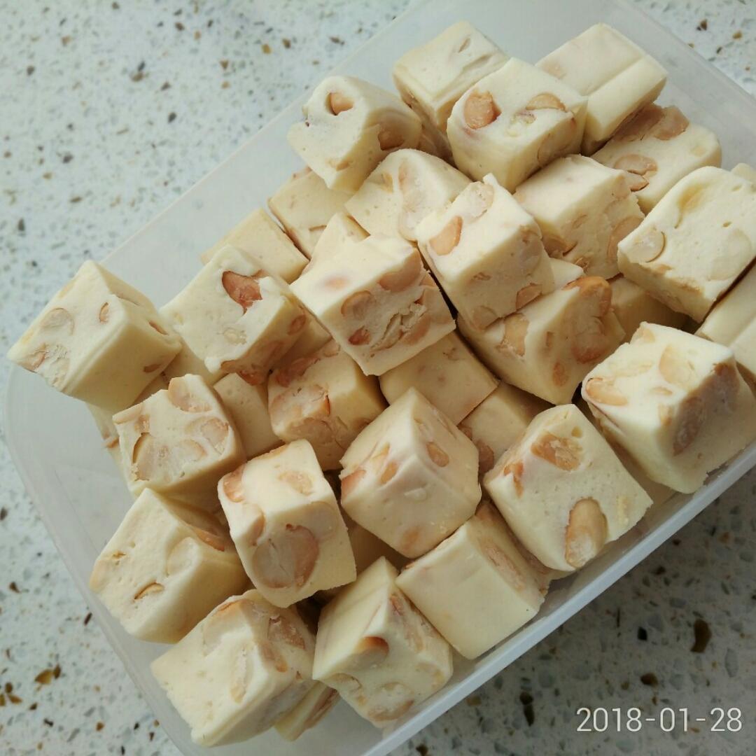 最爱春末夏初 做过 面包机版棉花糖牛轧糖( •̀∀•́ )告别刷锅烦恼 #自制健康小零食#第一次做,糖刚融化就拌了花生,口感比较软,很香甜。下次做考虑换成无糖奶粉或原味的棉花糖,多熬一会儿糖,还是喜欢偏硬点的😋 2018-01-28