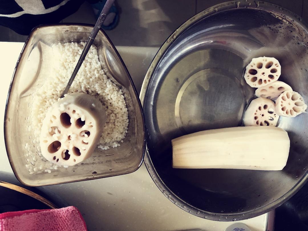 1泡一晚的糯米充填到藕里