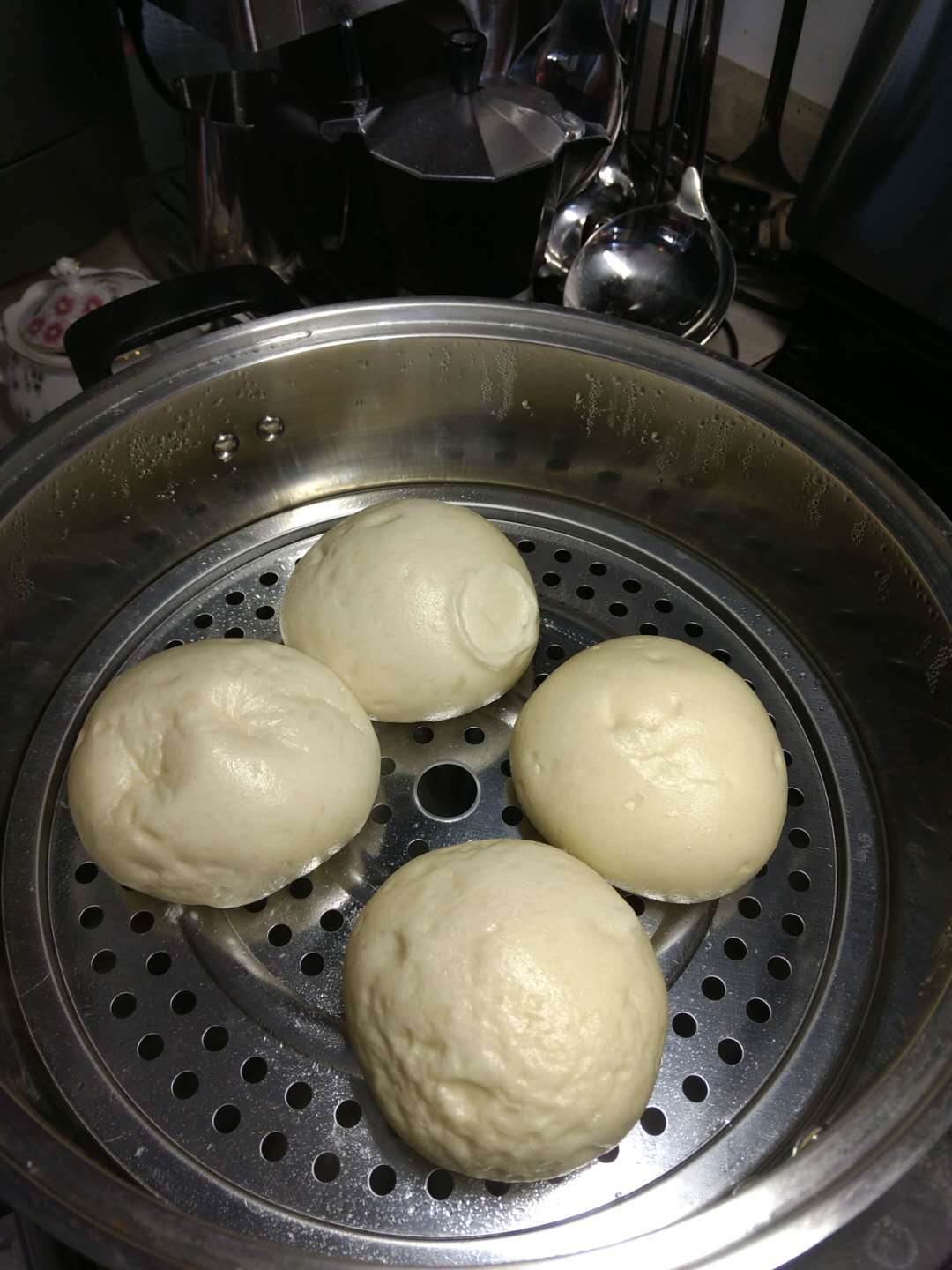 CoCo厨娘 做过 发面馒头 最近做馒头老是失败。昨天用每次成功的中筋面粉方子,但是用高筋面粉来做,结果超级失败,馒头关火后,好多个馒头部分缩成了死面疙瘩。 不甘心,今天试了这个方子。只用了200克面粉来试,也是用面包机。第二次发酵,就直接放在放了凉水的蒸锅了,30分钟就行了。 用布把蒸锅盖子裹起来蒸,水开后用中小火蒸了15分钟。布裹上盖子,很好解决了盖子上的水滴在馒头上的问题。关火后,等了三分钟揭开盖子,听见了放气的声音,有个一两个馒头还是塌了一点点。 但是总的来说,比昨天好太多了。馒头的口感很好,香喷喷,又很筋道。 2018-05-10