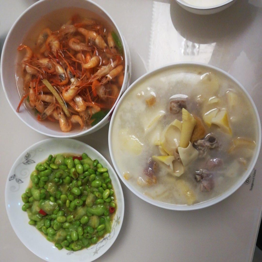 腌笃鲜,河虾,丝瓜毛豆
