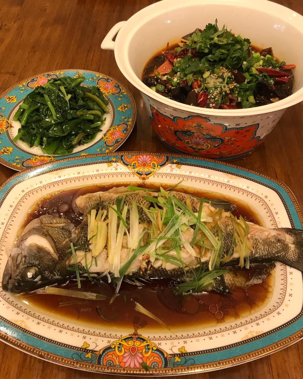 清蒸鲈鱼 毛血旺 清炒木耳菜