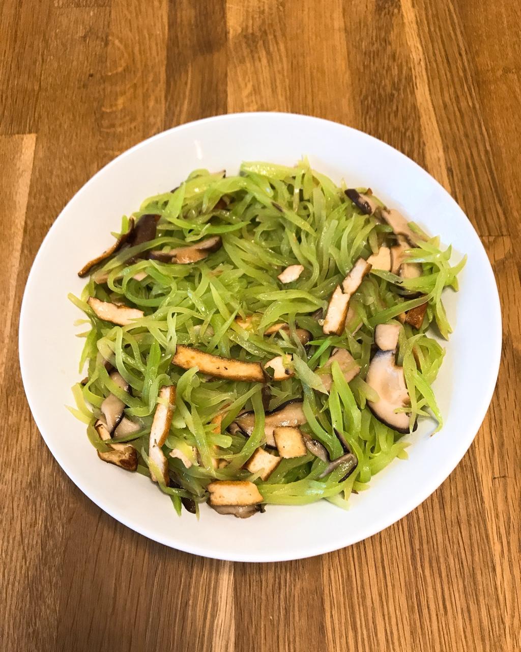 四根莴笋,四个鲜香菇,三块香干,炒了一大盆。