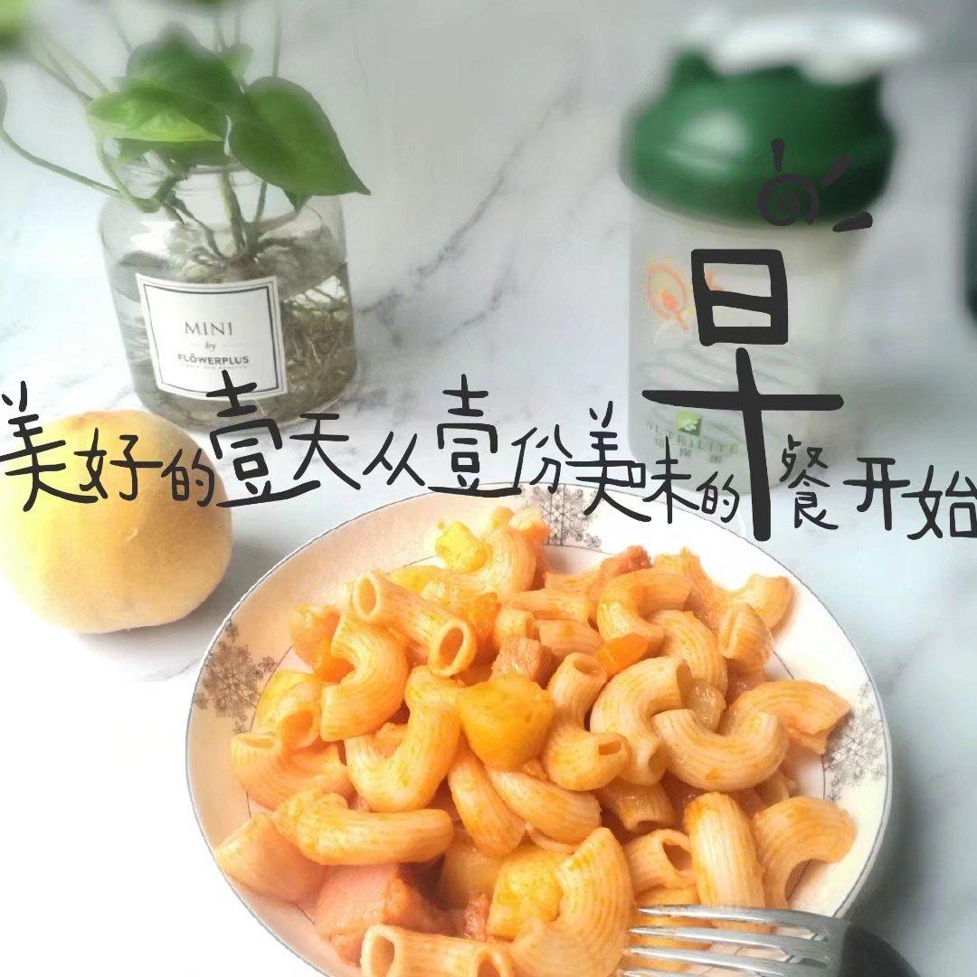早餐16:通心粉,黄桃,幸福餐2勺