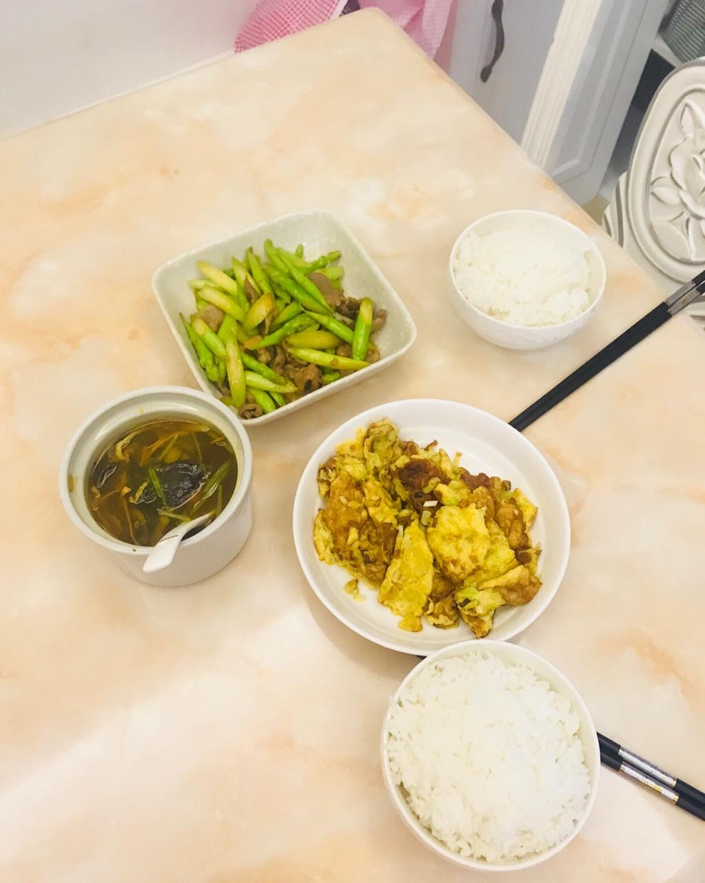 大猫小猫de幸福生活 做过 晚餐•2018年7月15日 晚餐,芦笋炒肉,韭黄煎蛋,虫草花乌鸡花胶人参汤(小猫就喝了一口),全部光盘了,好饱!明天,小猫姐姐的暑假班正式开始,我又要开始上下接送的苦逼生活了,人生啊… #晚餐•2018年7月15日# 2018-07-15