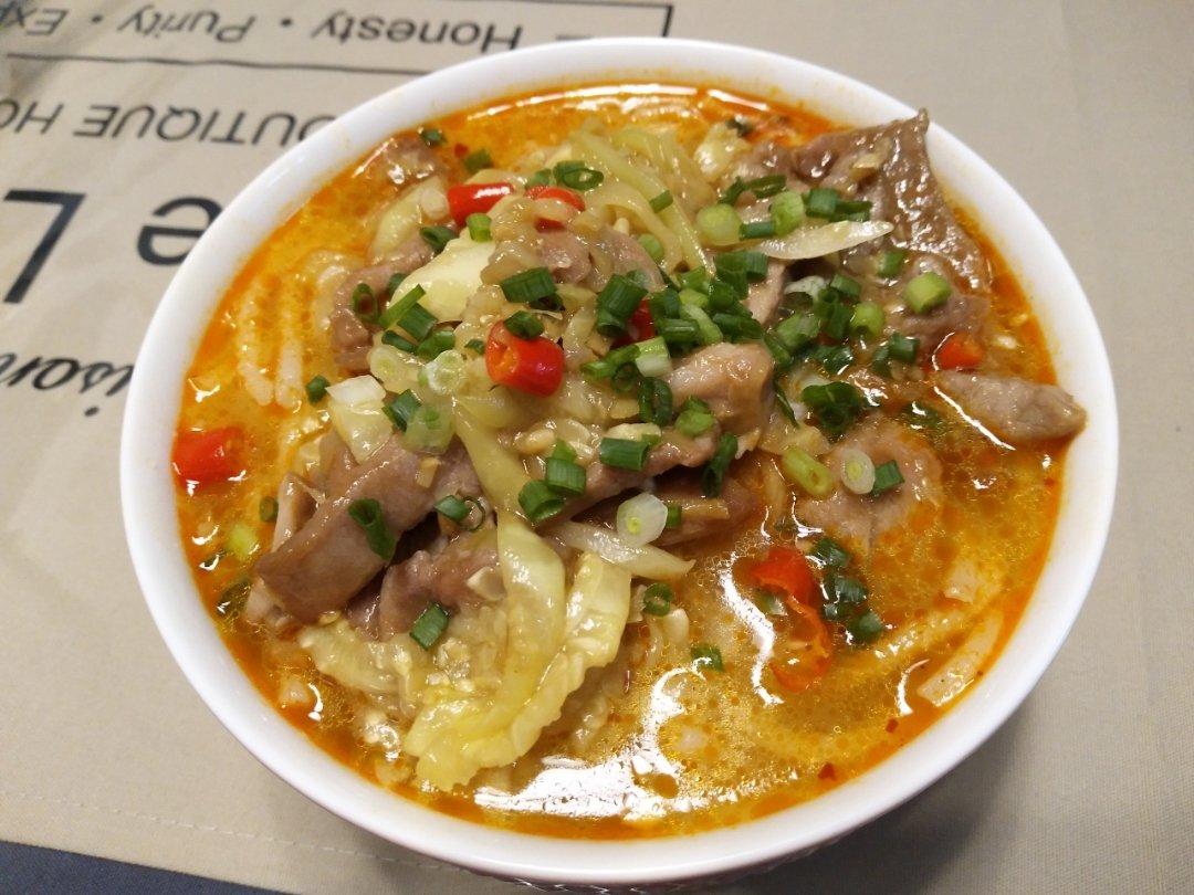 这是江西特色,盖浇排粉。我觉得排粉很好吃,也不易烂,有嚼劲!开点盖浇更棒,随便你是辣椒炒肉,还是白菜梗炒肉,我这是西葫芦炒肉盖浇,都是很棒的!