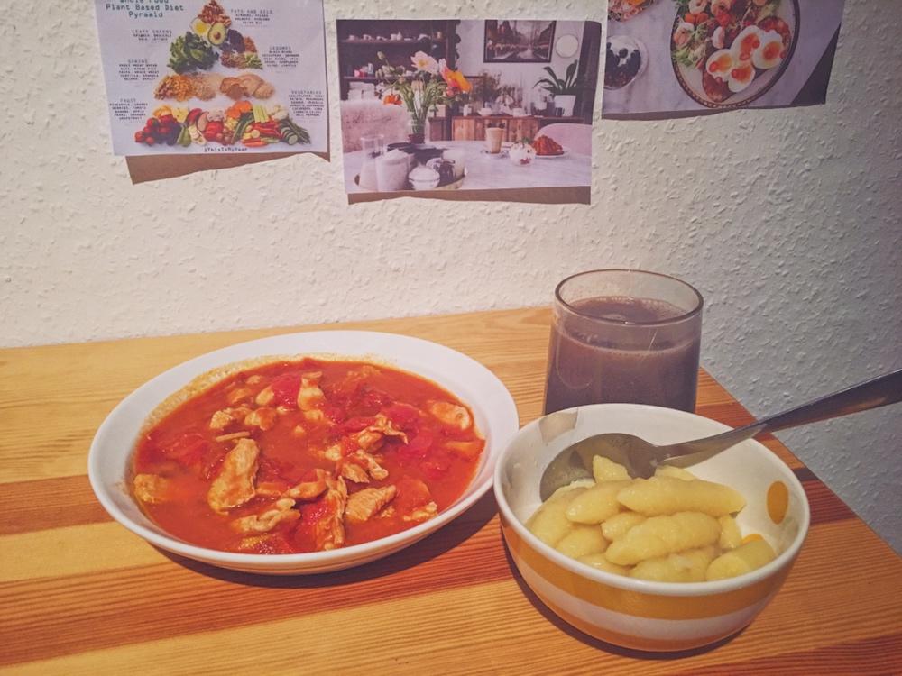 一颗蜗牛壳儿 做过 🐌蜗牛的三餐日记 #早餐•2018年12月13日#2018.12.13 早上好!今天早餐又严重高估自己的饭量了😂鸡胸和土豆丸子都没吃完番茄炖鸡胸,煮土豆鸡蛋面疙瘩昨晚的黑黑黑米糊土豆丸子是在超市买的,类似国内糯米丸子的口感,微微咸口,说明上说油煎5到10分钟即可,养生女孩水煮了,结果煮过头了🌚 2018-12-13
