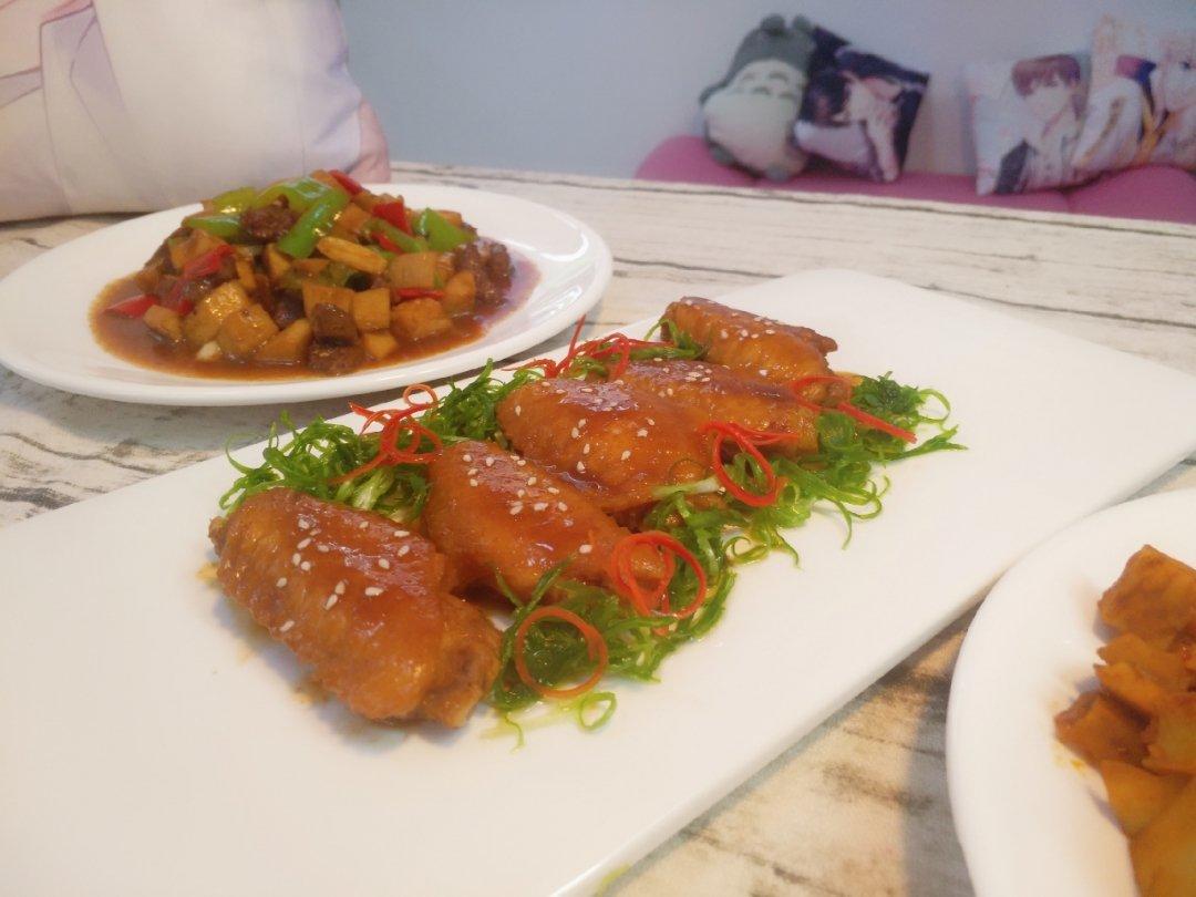 蜜汁鸡翅,活动3样跟做食谱,一口气都做了。