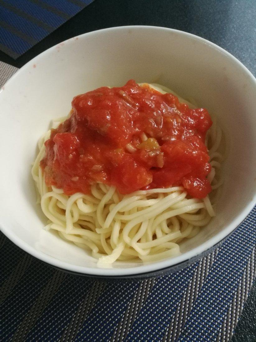 自己和面,自己熬番茄酱,用机器切的面,很劲道