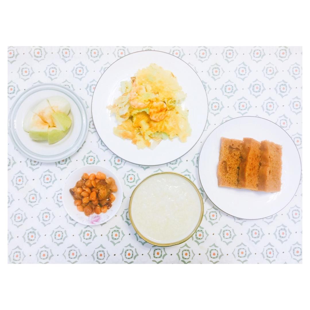 Vicki小厨 做过 晚餐•2019年1月12日 January | DAY 12 My fitness plate 05 小米粥🍚+包菜虾仁蛋饼🍕+马蹄糕🥧+卤花生🥜+芭乐 超级下饭的卤花生,香酥的蛋饼,搭配上小米粥感觉吃得特别舒服,嘿嘿。#晚餐•2019年1月12日##给我力量的食物##我的最爱##一人食##下饭菜##快手菜##家常菜##鸡蛋饼🌺# 2019-01-12