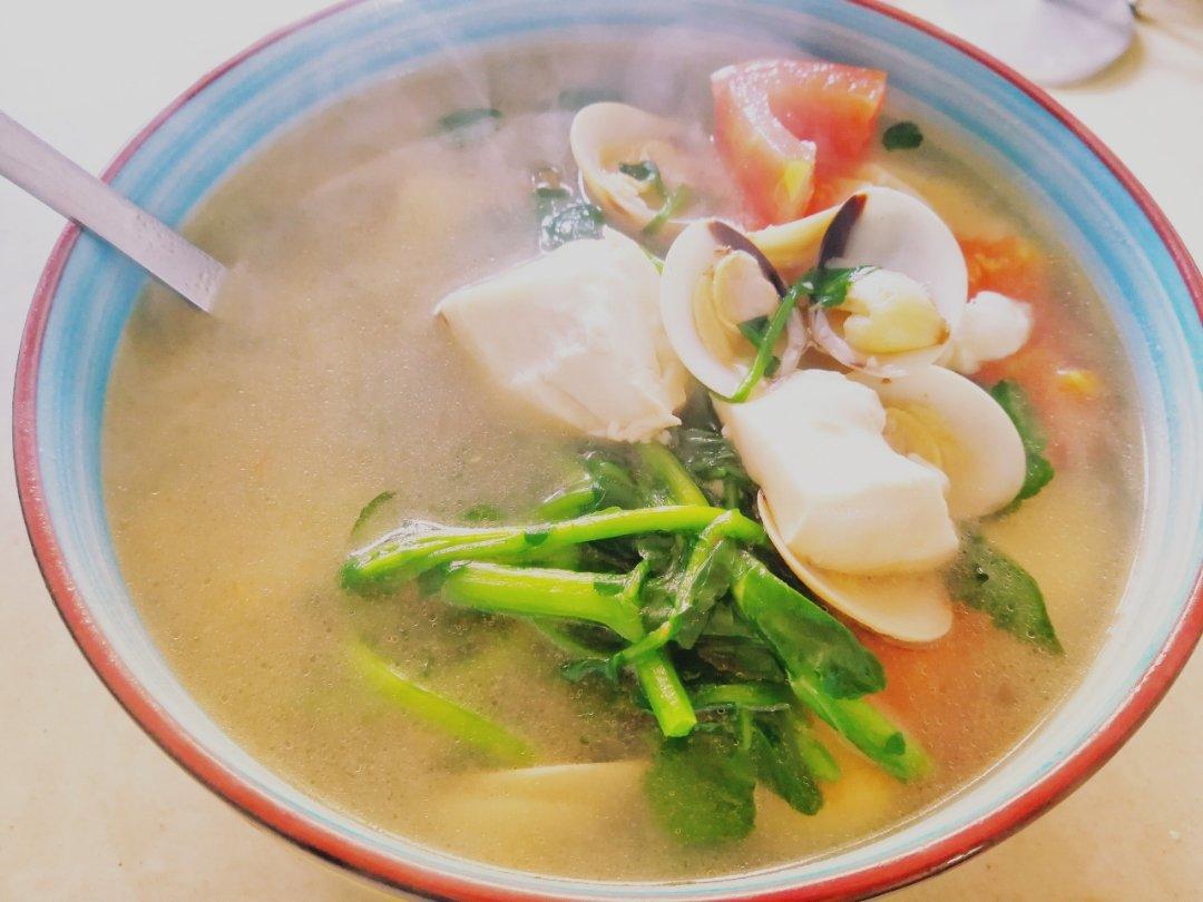 蛤蜊番茄豆腐青菜汤~快手菜,营养和味道也都很赞~