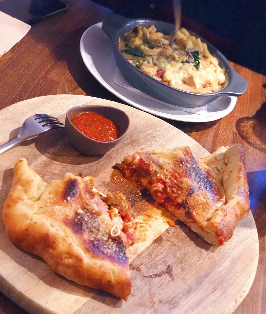 在Zizzi吃的Calzone,是一种意大利的折叠披萨。更像馅饼了,不过还挺好吃的。