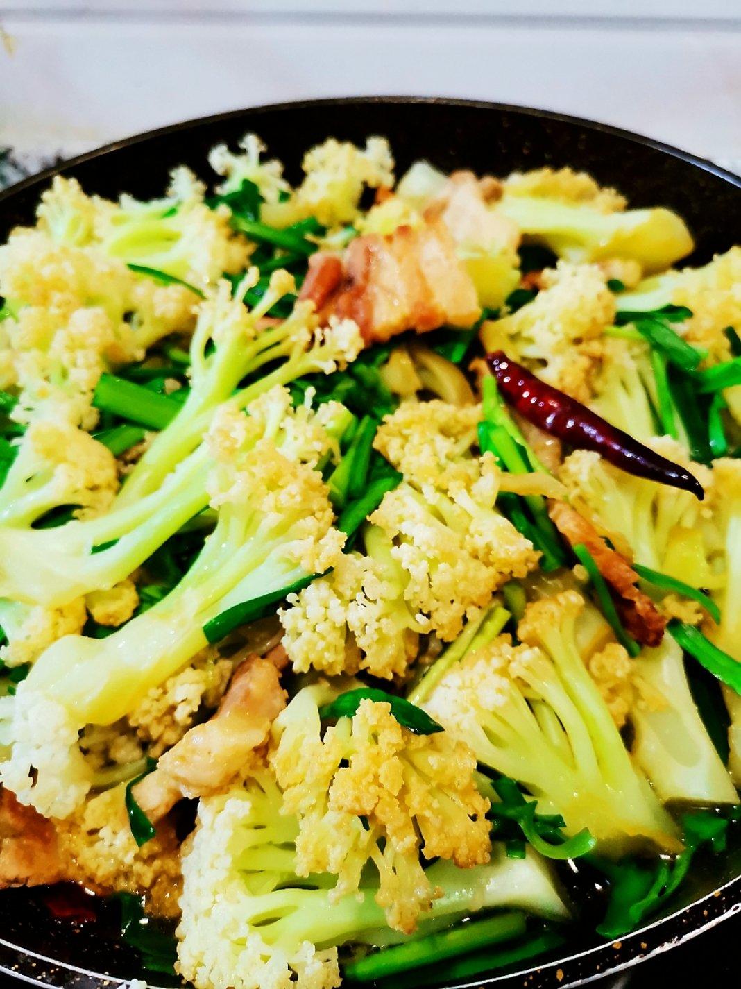 干锅有机菜花,杂粮粥