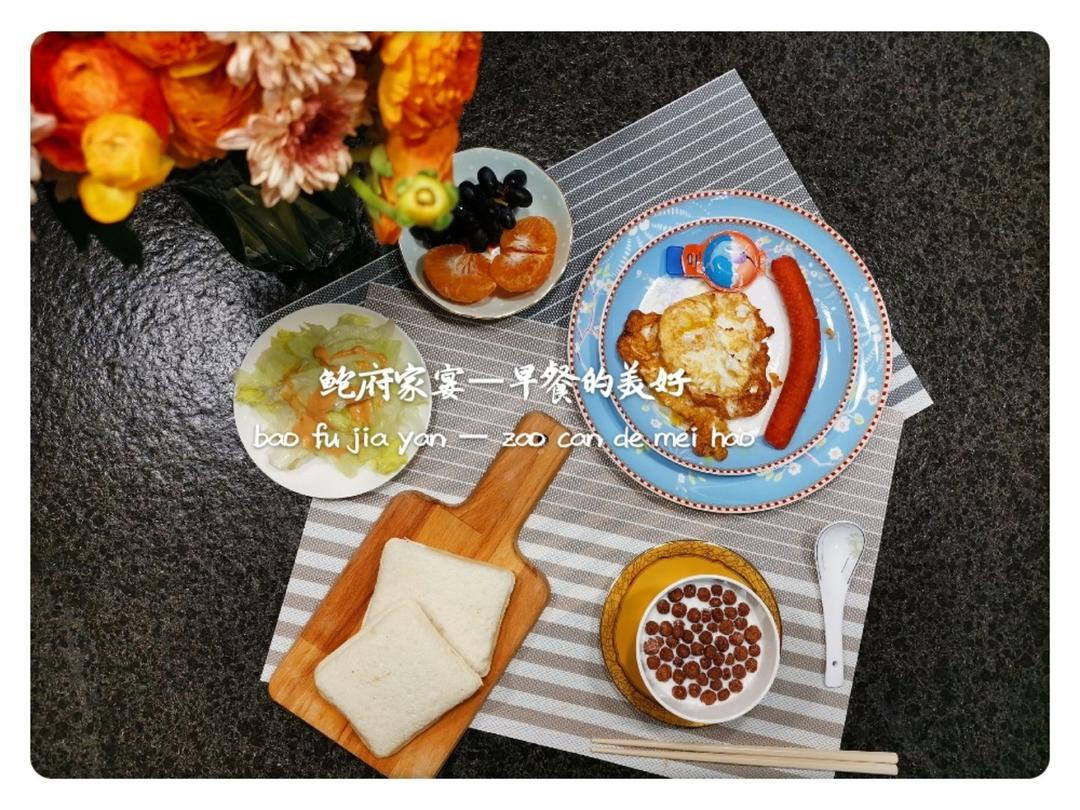 zhu-wan-xu 做过 早餐•2019年3月5日 #早餐•2019年3月5日# #家有小学生# #鲍府家宴——早餐的美好# 牛奶巧克力豆&花生酱面包&生菜沙拉&煎蛋香肠,餐后水果丑桔&提子,周二早~~ 2019-03-05