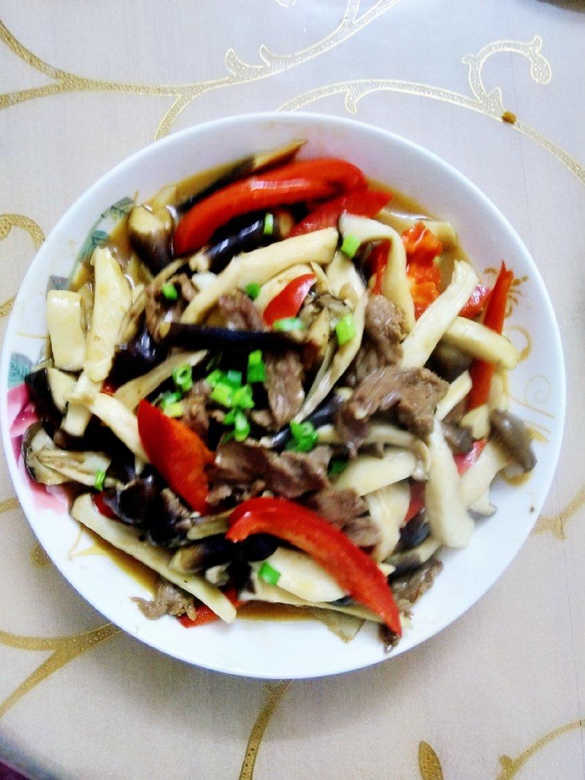 好清脆的姬松菌。(牛肉,姬松菌,鸡腿菇,红菜椒)