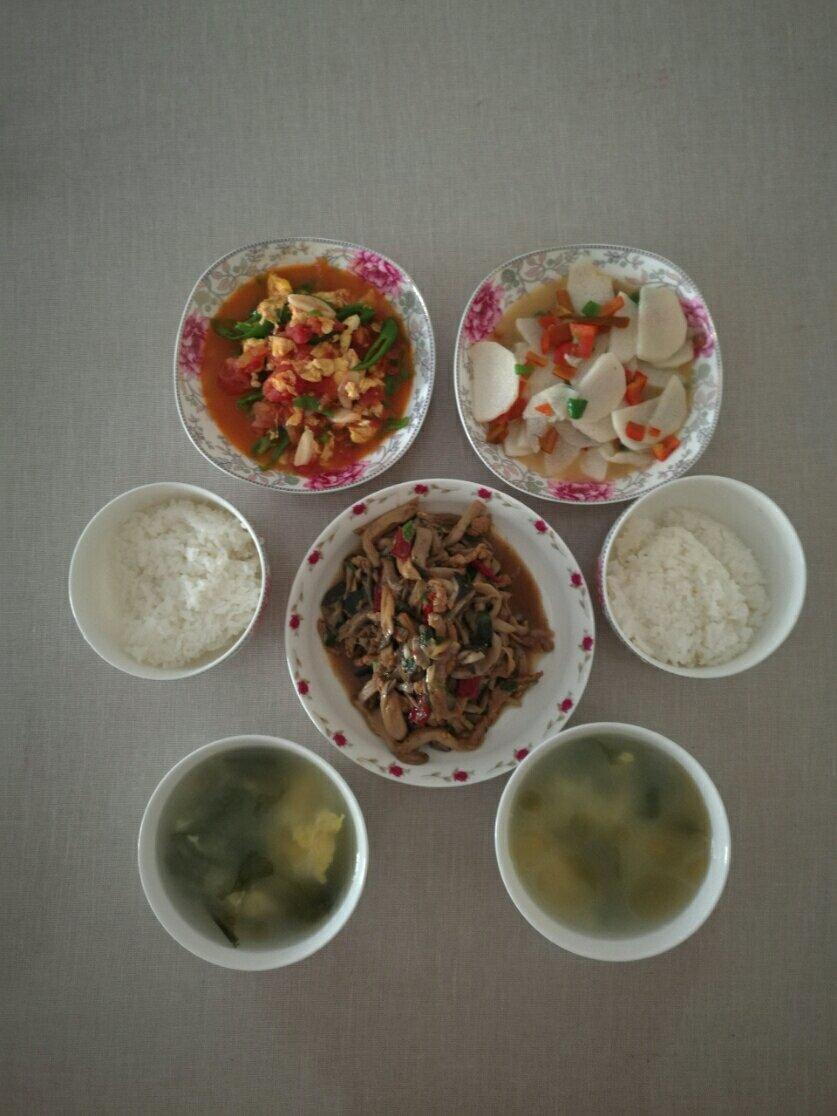 磨菇炒肉,素炒山药,西红柿鸡蛋辣子