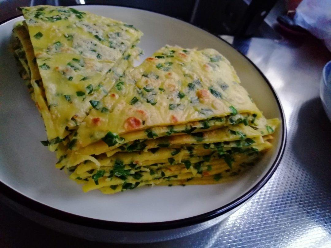 韭菜鸡蛋饼,海带肉丝汤!