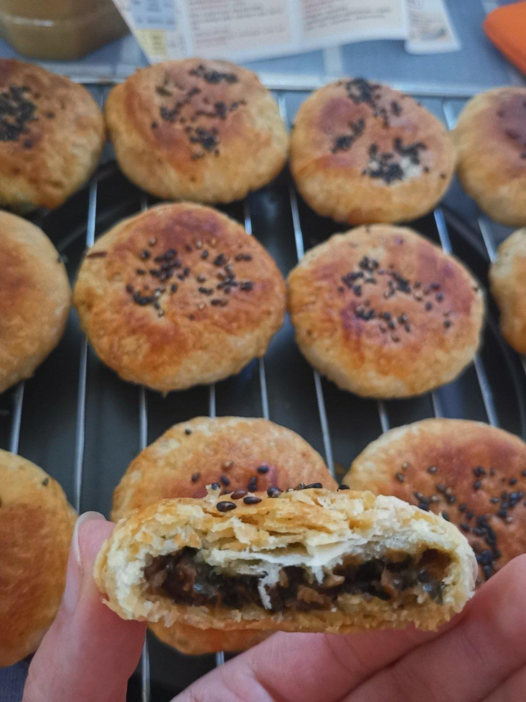 布布下厨房 做过 黄山(屯溪)烧饼 好吃是好吃,可是又被我做成了酥的口感,不够脆,楼主,这到底是什么原因啊。。。是因为我油酥因为油温高成团了吗笔记下230度上下火15分,翻面再8分左右,又翻回来8分左右,然后因为没有水怡,用了点麦芽糖加水融化又加了点油去刷,乱搞。。。 2019-04-14