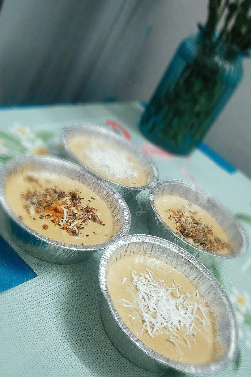 糯米泡软磨成浆(没有破壁机最好过滤一下哦)加入蔗糖椰浆酵母发酵出原体积的二倍后(注意了搅拌后的面糊是可以缓缓流动的)搅拌跑气泡倒入有坚果或煮好的红豆薏米容器里第二次发酵后无须再搅拌就可以蒸,(馒头包子那样蒸熟)