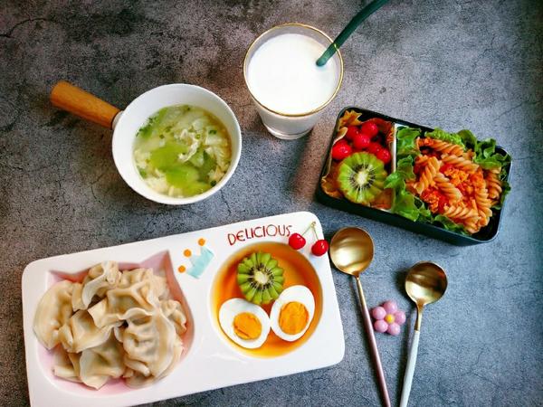 小朋友和我们大人之间,除了身高和年龄有区别之外,其他都是平等的😘,小朱同学近期的低迷和我连续工作12天的阴霾心情是一样的💪,所以发现我们的小气球🎈 泄气了就打打气,膨胀了就撒点气😀,但是凡事一定要去努力💪,希望昨晚的谈话,能帮助我们俩迅速的调整好状态,饱含激情的重回跑道🏃 ,妈妈与你一起共勉👪。其实,平淡的生活中有所小期待还是挺幸福的,比如想想下个月我们的暑期长途旅行🏇 ,对吧😘,早起给自己做了一份简单的便当早餐,小朱同学喜欢的干捞水饺,分别搭配丝瓜蛋花汤和牛奶,美好的一天开始啦🌴,愿我们都加油🔥,早安亲爱哒💋