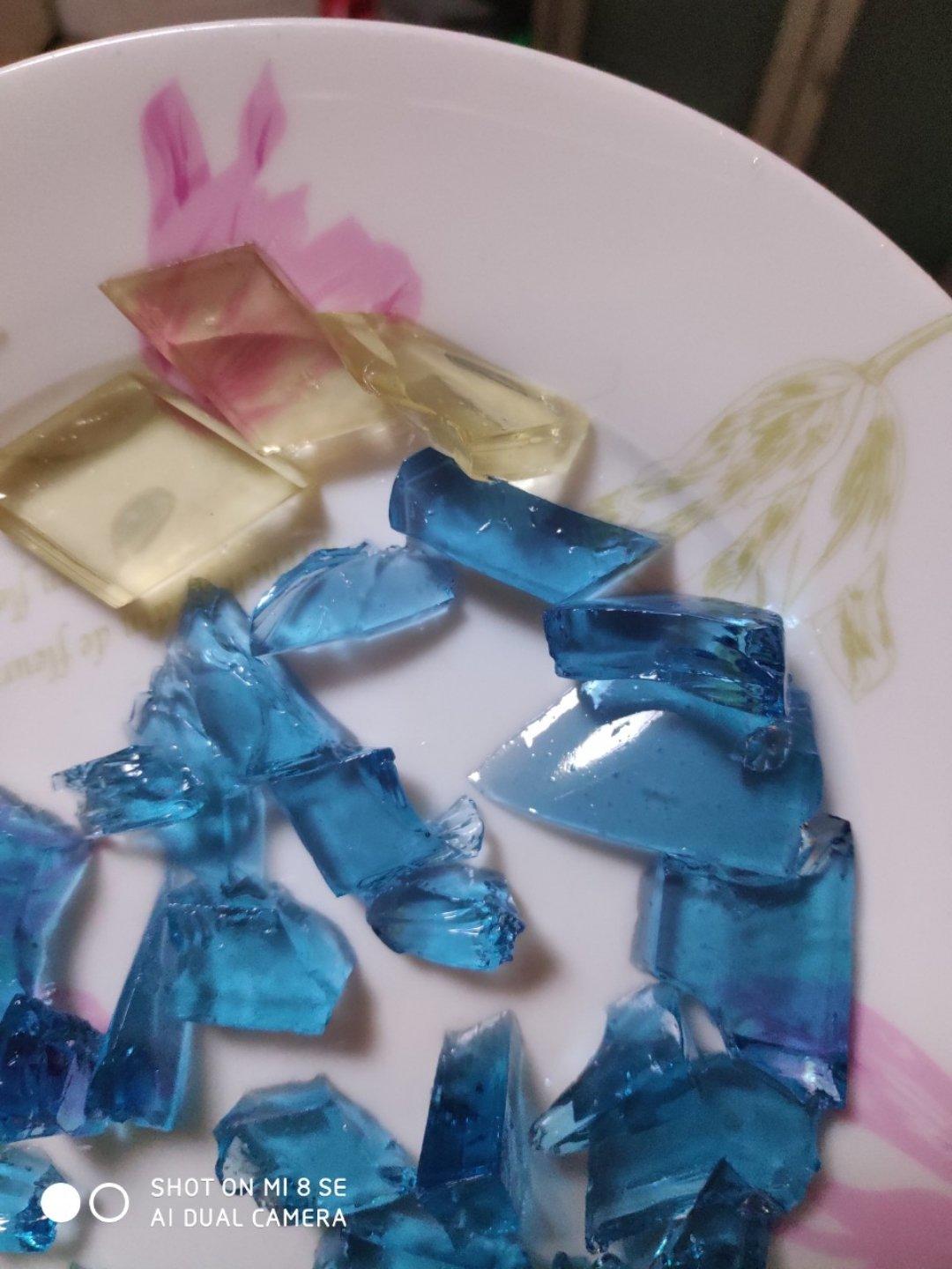 谢文红红 做过 高颜值糖果—琥珀糖、宝石糖、水晶糖 没有色素,取汁红茶、菊花金银花、蝶豆花,感官上用菊花金银花煮水取汁的更胜一筹,应该是它的苦味分走了部分甜度,还更有菊花的淡淡香。 2019-07-24