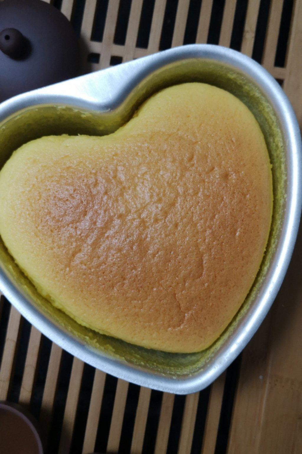 6寸的心形模具比圆的装的少,所以就倒在小批萨盘里些。冷藏后,更好吃