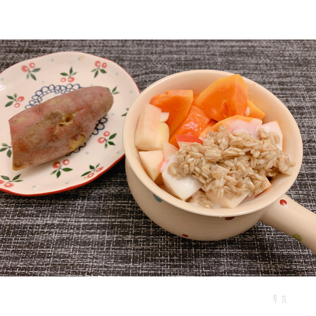 木瓜+桃子+酸奶+甜胚子+烤红薯