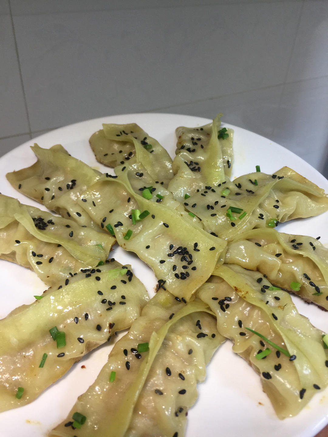 没买到饺子皮用馄饨皮做的锅贴,味道超级棒哦!儿子爱吃,老母亲就好有成就感呀!