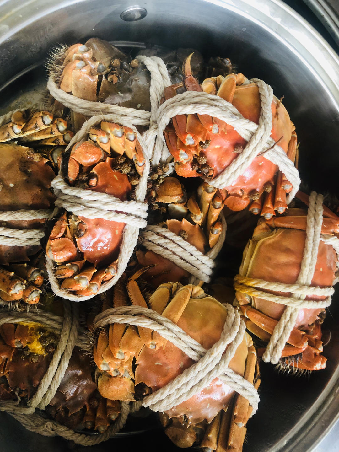 餐桌就在金色池塘边 做过 2019年10月07日 清蒸大闸蟹 还是不习惯放苏子叶 四川麻椒清蒸味道更浓😍 无蟹不欢🦀️ 配上潮式海参羹,是好朋友小聚的必备神器~鲜虾仁+加拿大🇨🇦海参丝+奇美香肠片+姜丝 炖煮成乳白色 2019-10-07