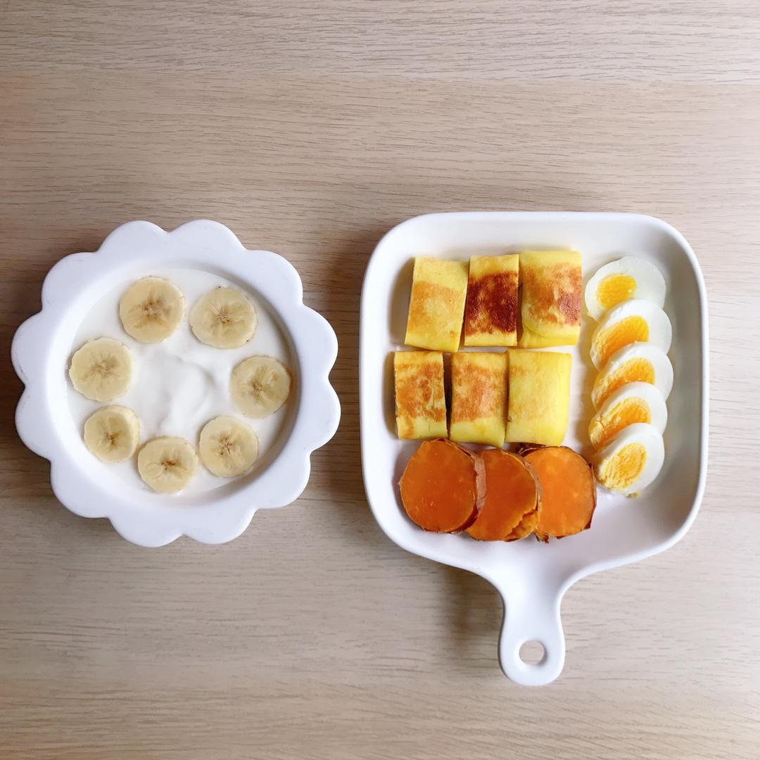 香蕉酸奶卷饼🍌➕白煮蛋🥚➕烤蜜薯🍠➕香蕉酸奶🥛