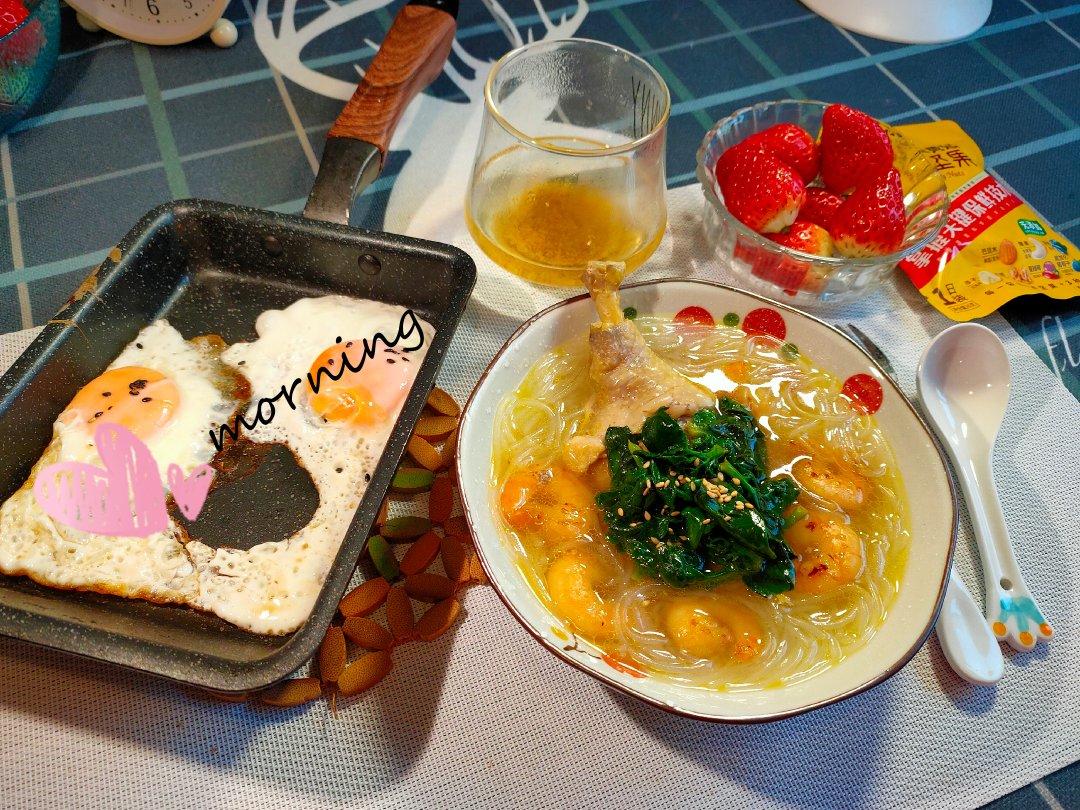 鸡汤虾仁粉丝+小菠菜