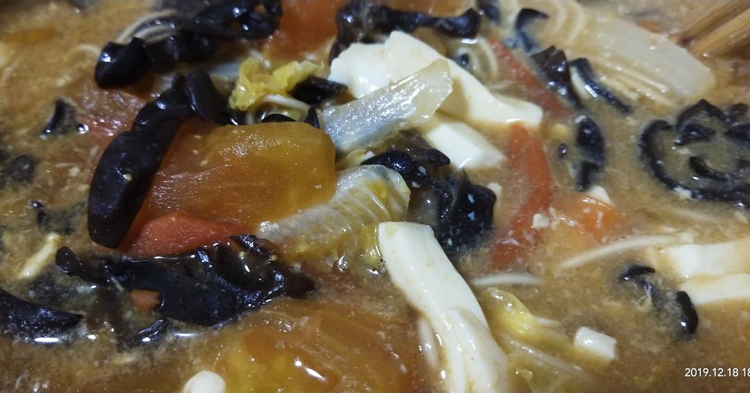 番茄鸡汁 做过 超级开胃的酸辣汤❗️10分钟搞定 番茄块切的大了些,又加了点面条,所以看起来颜色不太好看。但是冬天喝这么一大碗是真的舒服。而且少放点油盐,简直是让我不能再满意的减肥餐。 2019-12-18
