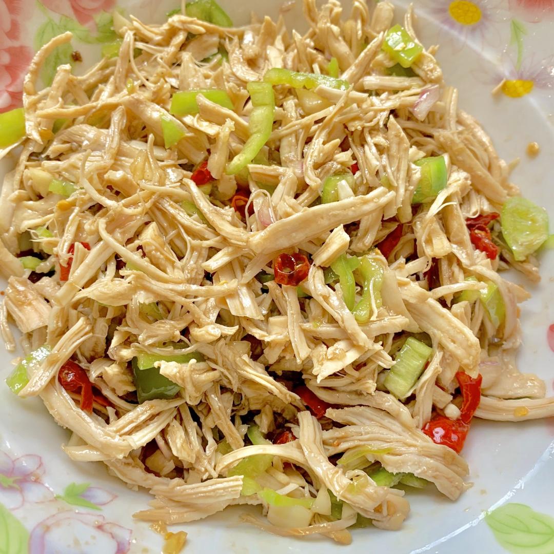 改天一起吃麻辣烫 做过 凉拌鸡丝、 鸡胸肉做滴~大家可以尝试下 很好吃哦鸡胸肉煮熟 然后撕成丝 准备一个小碗 里面放入盐 鸡精 辣椒 蒜泥 蚝油 麻油 然后热油 把这些调料炸一下 放入鸡胸肉丝里 然后放醋 醋一定要多哦 然后就好啦 2020-02-16