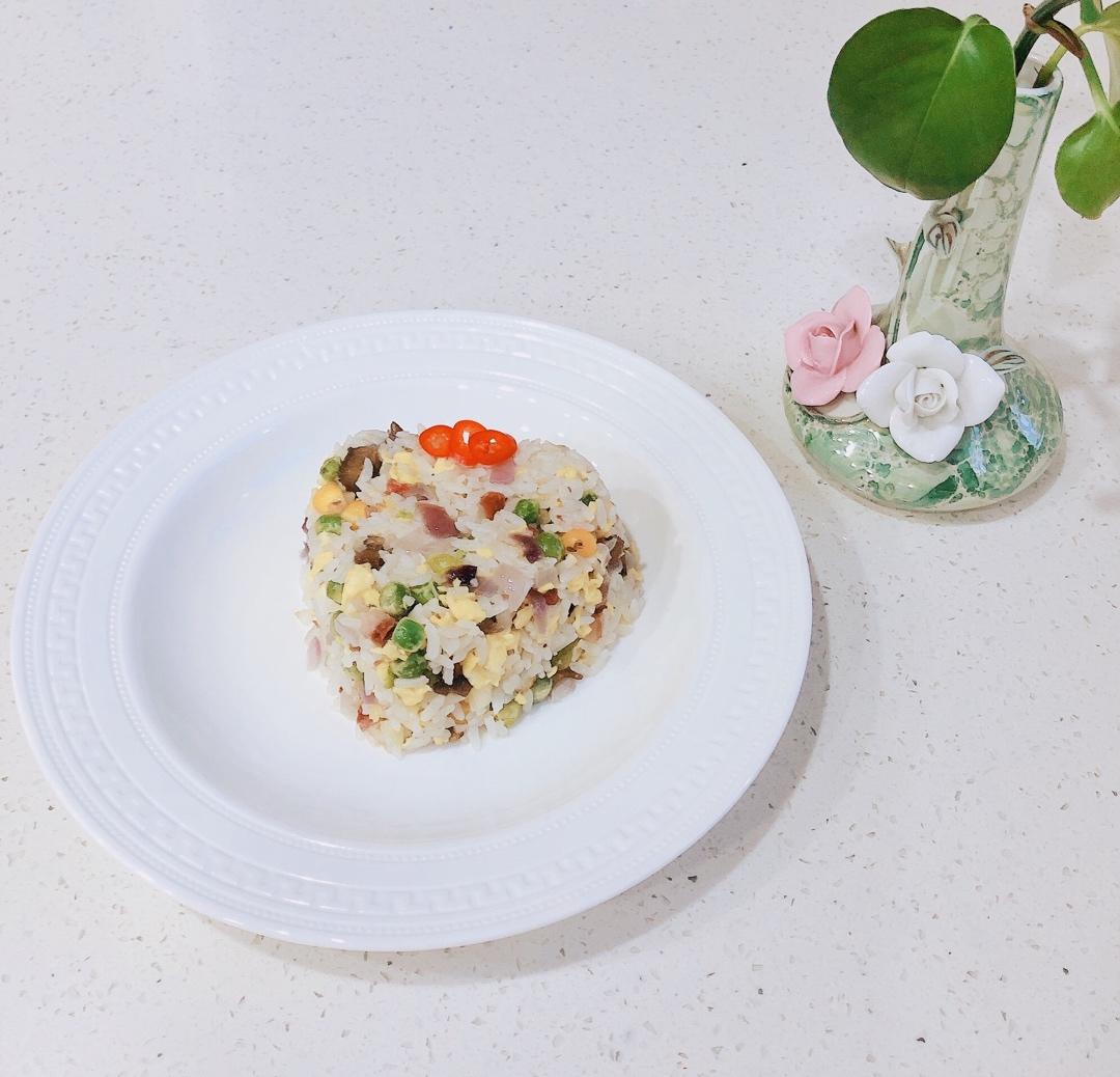 天使与玫瑰 做过 早餐•2020年2月17日 #早餐•2020年2月17日# 大家早安🌹昨晚的剩饭+橄榄油+海参+紫洋葱+自剥豌豆粒+自剥玉米粒+瘦腊肉+山鸡蛋碎~家里宅有啥吃啥😊 2020-02-17