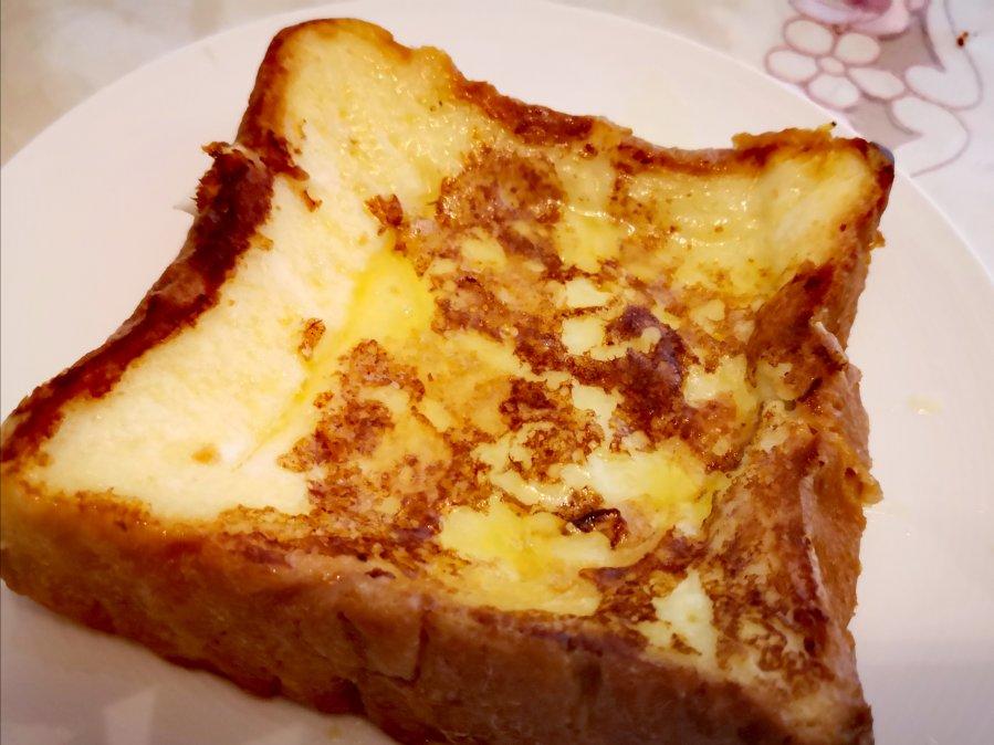 呼噜睡 做过 法式吐司 厚吐司1,鸡蛋1,牛奶100,糖10吸水较慢,可晚上放置,第二天早上做不粘锅不放油,煎至上色摆盘,放置一片黄油,微波炉加热(吐司厚,防止里面蛋液未凝固;动物黄油炒锅时间长会焦黑有杂质) 2020-02-21