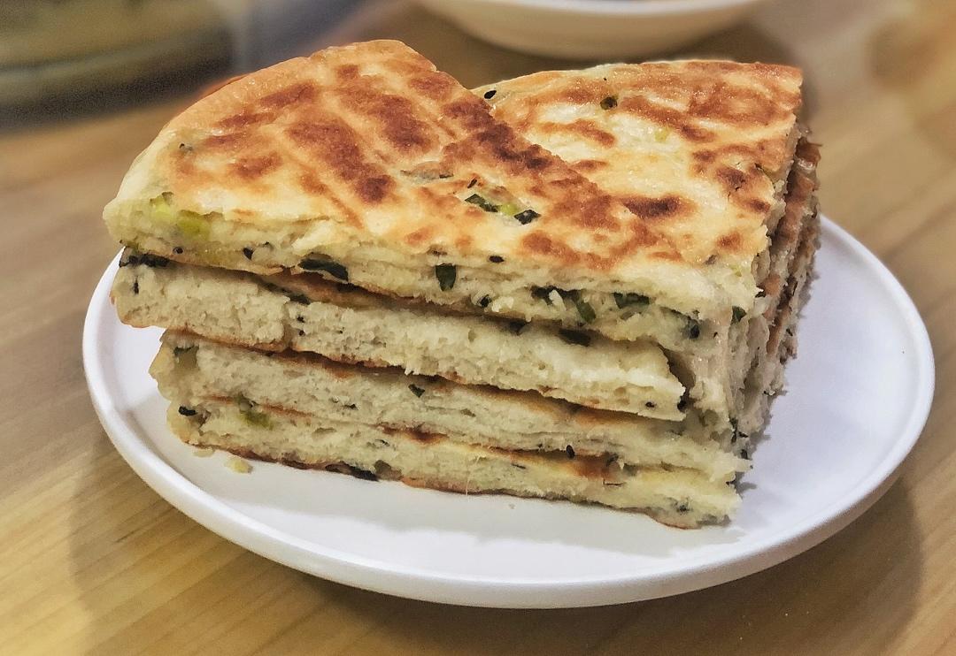 爱吃面包的嘟嘟 做过 🇨🇳叠饼大法—九韭大饼&发面葱花千层饼(一次发酵) 第一次尝试做的还不错,得到了家人的肯定和赞许。但是面团稍湿润,揉面的时候有些粘手。发酵时间久了一些,最后煎出来层次不是特别明显了。但是味道不错,电饼铛煎出来外观也不错👍#晚餐•2020年2月22日# 2020-02-22