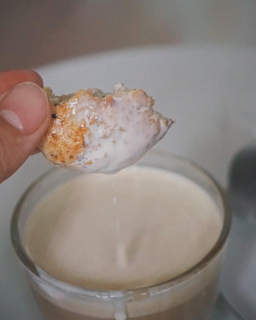 这个司康第二天吃会有点干,我做了一杯dirty,沾了一点淡奶油配着吃,真的绝了!!