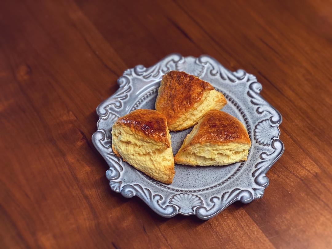 因为做了酸奶和滤了点浓缩酸奶,buttermilk用了酸奶和乳清替代了。浓缩酸奶替换clotted cream搭配着吃,超棒!冰冰的冰淇淋口感,重点是不胖哈哈哈哈哈哈哈