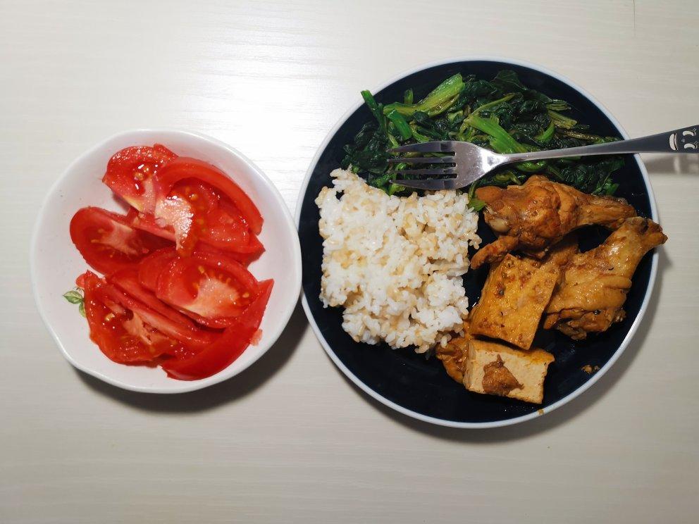 叮叮叮叮鱼 做过 减脂 午餐🍅糙米饭 80g🍅凉拌菠菜 80g🍅煎鸡胸肉 卤鸡腿豆腐 共150g🍅番茄 150g晚餐🥙水煮红薯 80g🥙烧时蔬 130g🥙煎鸡胸肉 卤鸡腿豆腐 130g#一人食# #减脂# 2020-03-25
